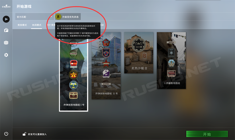 再次启动游戏,会发现进入了国际服版本,并且可以进入官服游戏模式,不过其中竞技模式(官匹)需要先升到2级才能进入,我们可以先打休闲等其他模式升级。