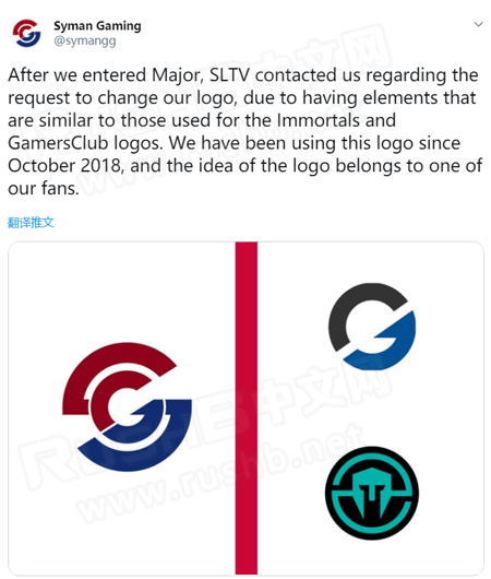 对于这个说法,Syman Gaming俱乐部并不赞同,表示这个LOGO从18年10月使用至今,设计概念属于粉丝,加上Gamers Club并非电竞俱乐部(巴西赛事组织公司),而Immortals也并非本届Major参赛队伍,已经要求V社对队标重新独立审查。