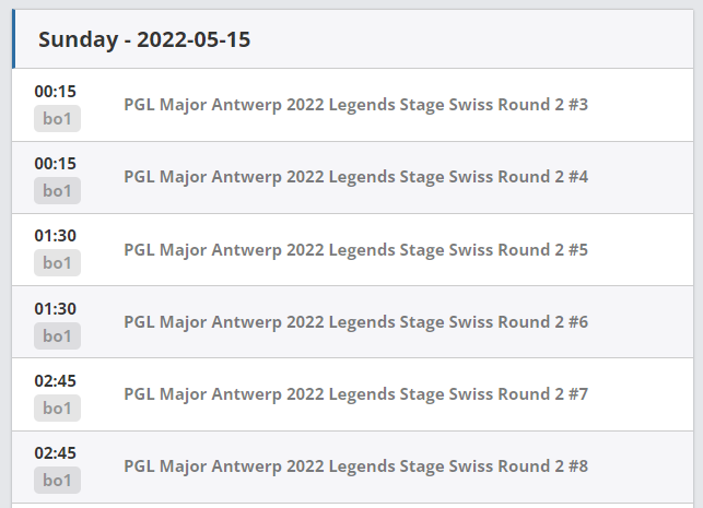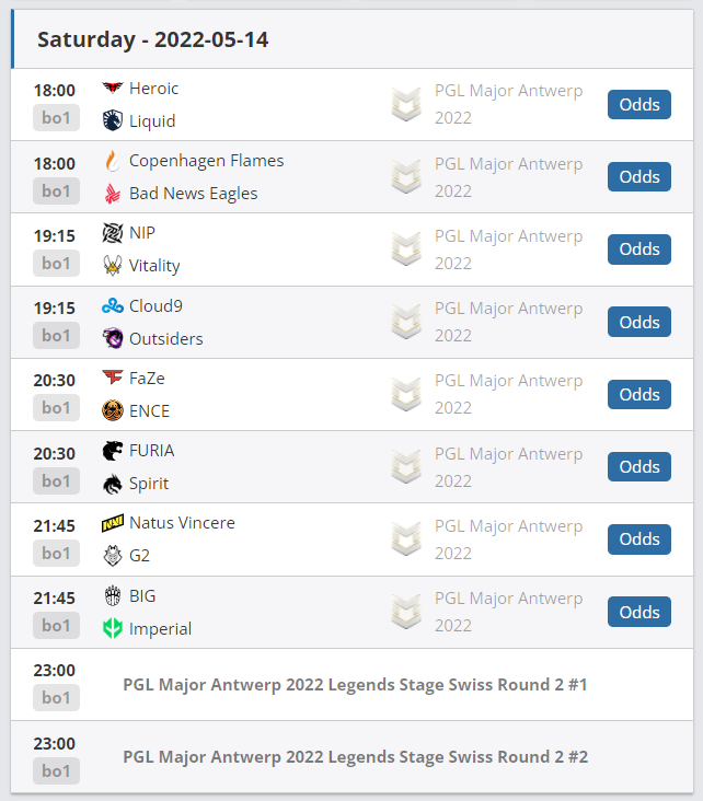 CSGO Major大赛PGL安特卫普2022挑战赛已经正式结束,8支晋级队伍将与另外8支队伍在传奇赛阶段(第二次瑞士轮)争夺8个晋级名额,比赛将在5月14日晚上6点开始,记得在下午3点前完成你的传奇赛战队预测。
