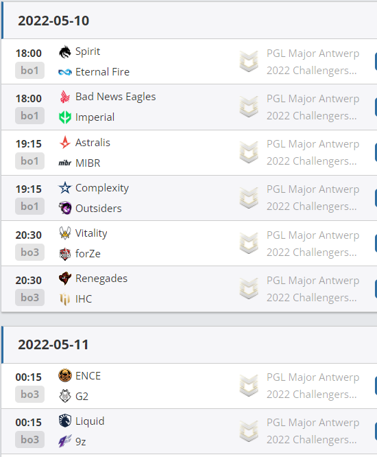 在今天5月10日,挑战赛将开始第三轮比赛,赛程如下,首场比赛Team Spirit vs Eternal Fire和Bad News Eagles vs Imperia将于北京时间晚上6点开始,将持续到11号凌晨。