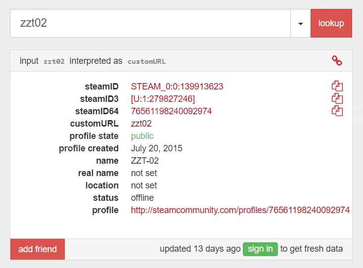 那么在输入框内填入zzt02或76561198334XXXXXX,然后点击“lookup”进入下一步