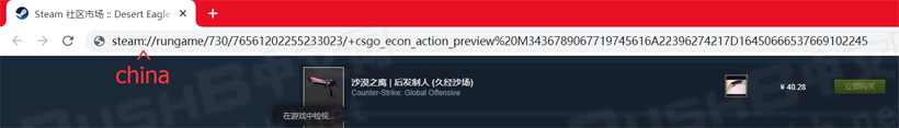 然后回车,部分浏览器会询问你是否打开Steam China Bootstrapper,点击打开即可,然后运行CSGO,便会直接进入该皮肤的检视界面。
