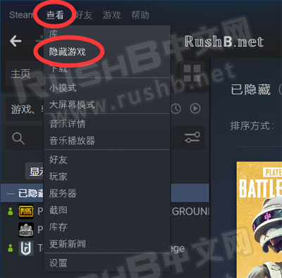 打开Steam客户端,点击左上角的“查看”——“隐藏游戏”。